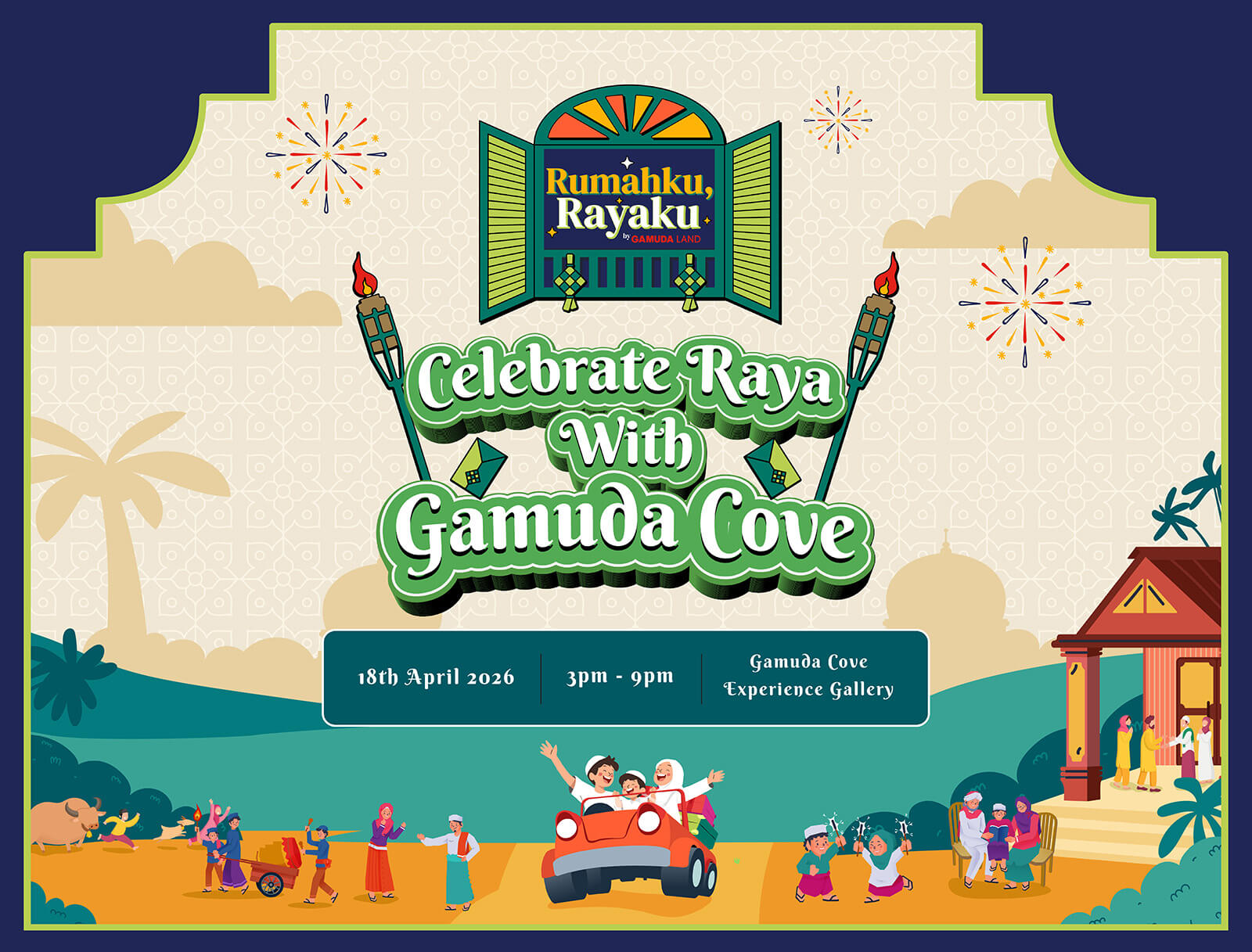 Celebrate Raya with Gamuda Cove! 🌙✨ A heartwarming day filled with festive flavours, meaningful moments, and creative experiences for everyone to enjoy. Come together with your loved ones and make this Raya truly special. 💚