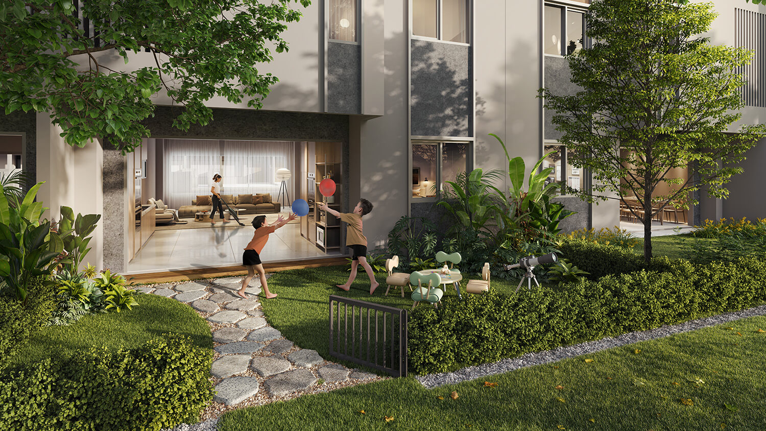 The 2-Storey Link+ Homes at The Mews harmonise nature and modern comfort with expansive private gardens and serene, car-free landscaped spaces. Crafted for cherished gatherings, effortless play, and refined pet-friendly living, every corner is designed with intention. It is a distinguished home shaped for today's sustainable, elevated lifestyle.
